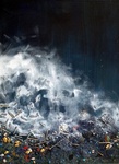2007'Foam' betekent schuim. Eerst leek dit schilderij op een onderwaterwereld die je aan je voorbij ziet gaan als je verdrinkt.. Dit vond ik uiteindelijk toch niet goed en ben er helemaal overheen gegaan met wit. Toen was het wat mij betreft wat het moest zijn. Een toestand waarin je juist niks meer helder ziet.