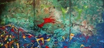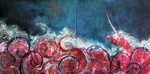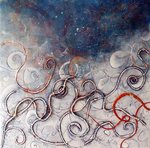 2007Toen ik water af had, heb ik gelijk 6 nieuwe doeken opgezet. De kleurstelling op al deze doeken was met rood en groen en gaf mij meteen de associatie met draken..